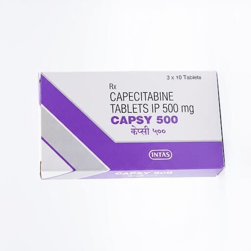 CAPSY 500 is an oral chemotherapy tablet containing 500 mg of the active ingredient capecitabine, manufactured to Indian Pharmacopoeia standards. It acts as a prodrug that is converted within the body into the active anti-cancer agent 5-fluorouracil (5-FU), preferentially targeting tumor cells. This medication is primarily prescribed for the treatment of various stage colorectal cancers and advanced or metastatic breast cancer.