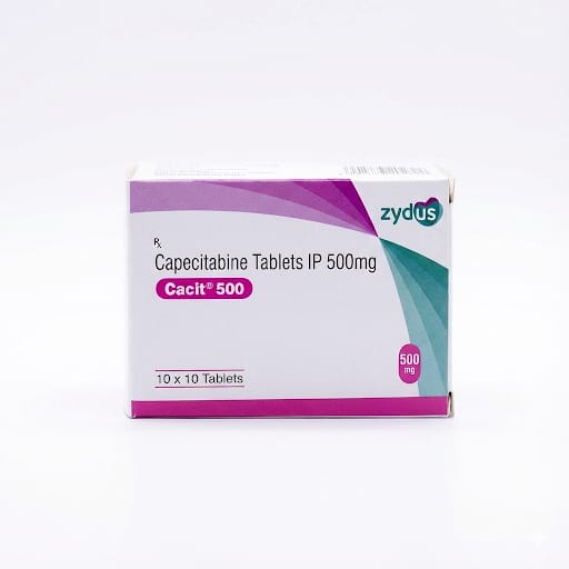 Cacit 500 mg Tablets (Capecitabine IP) are an oral chemotherapy medicine used to treat various types of cancer, including colorectal and breast cancer. Capecitabine is a prodrug that converts into 5-fluorouracil (5-FU) in the body to help block cancer cell growth. These tablets are taken by mouth as directed by an oncologist. Cacit helps slow tumor progression and improve treatment outcomes. It must be used under strict medical supervision due to possible side effects.