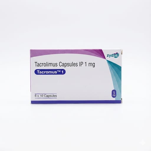Tacromus 1 mg Capsules (Tacrolimus IP) contain tacrolimus, an immunosuppressant medicine used to prevent organ rejection in transplant patients (such as kidney, liver, or heart transplants). It works by reducing the activity of the immune system to help the body accept the transplanted organ. These capsules are taken orally as prescribed by a doctor, typically with regular monitoring of blood levels. Tacromus helps maintain transplant health but must be used under strict medical supervision due to possible side effects and interactions.